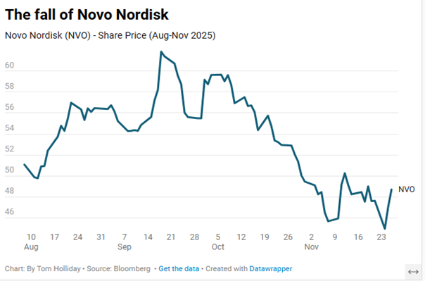 In attempt to rejuvenate demand, in mid-November, Novo announced that it would reduce the monthly price of injectable Wegovy for cash paying US consumers. Additionally, it pledged to prioritise the development of an oral version of the drug for the U.S. market. Novo said the move is anticipated to have a “low single digit negative impact” on global sales growth next year.