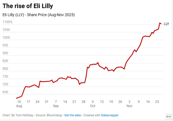 The rally continued into the fourth quarter, supported by a November agreement announced by the Trump administration to expand access to GLP-1 medications through government programmes including Medicaid and Medicare. Analysts have declared a positive outlook in light of the deal, with illuding to the offset of pricing pressure through increased volumes.